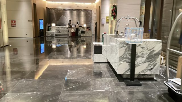レジデンスロビーから、ホテルのロビーを通って朝食レストランへ向かいます。