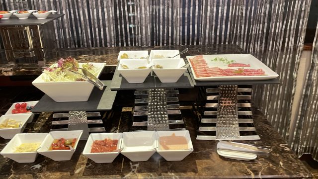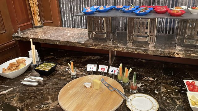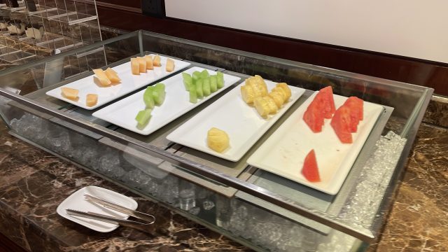 今回は一番安い部屋タイプの予約をしたので、本来であればチタンメンバーであってもクラブラウンジへ入ることはできませんが、事前にラウンジが使えるかどうか確認したところ「使える」という回答をメールでもらっていて、それを見せたところ今回はOK、ということでラウンジも入らせてもらいました。