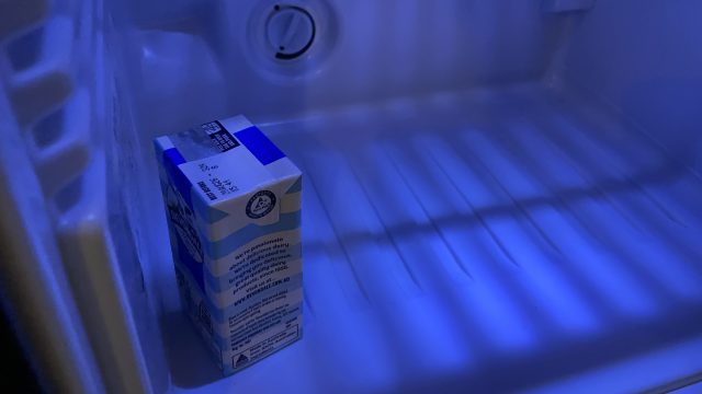 冷蔵庫の中には、オーストラリアのホテルでは大体入っている牛乳パック。