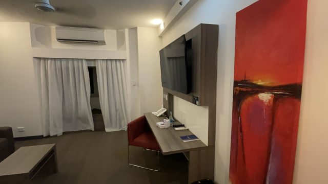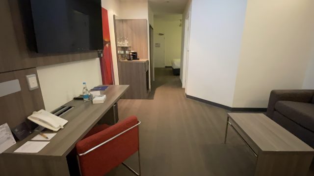 部屋は一応リビングスペースとベッドスペースに分かれているので、ジュニアスイート、という割には広めの部屋でした。