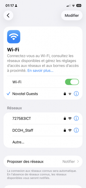 Novotel GuestsというSSID(ネットワーク名)があると思うので、それを選択しましょう。