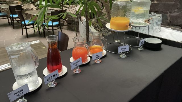 1階ロビーのレストランで、ウェルカムドリンクをいただくことができます。